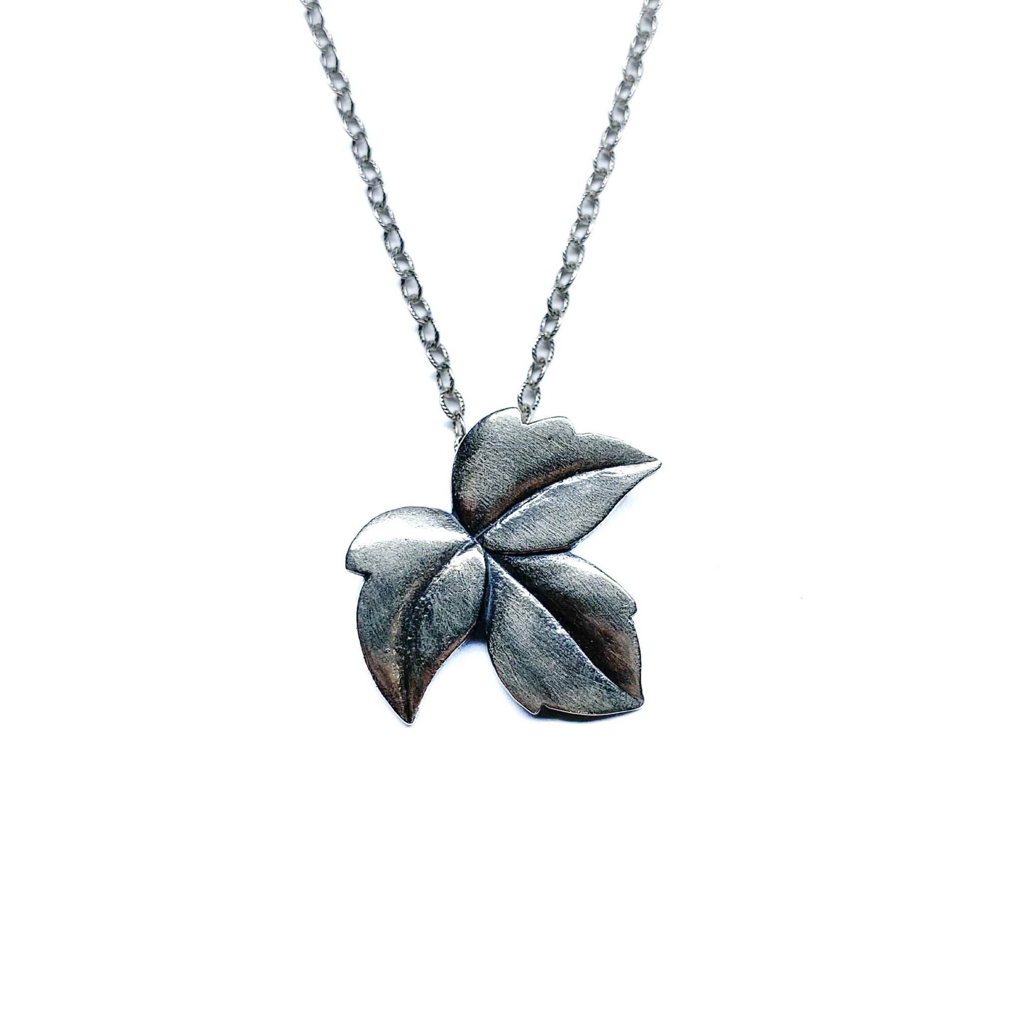 A life-sized toxicodendron radicans leaf, commonly known as poison ivy. I carved this leaf in wax, inspired by the dangerous beauty of those pointed, asymmetrical, and hypnotizingly shiny leaflets. It is meant to be worn as a protective amulet.
