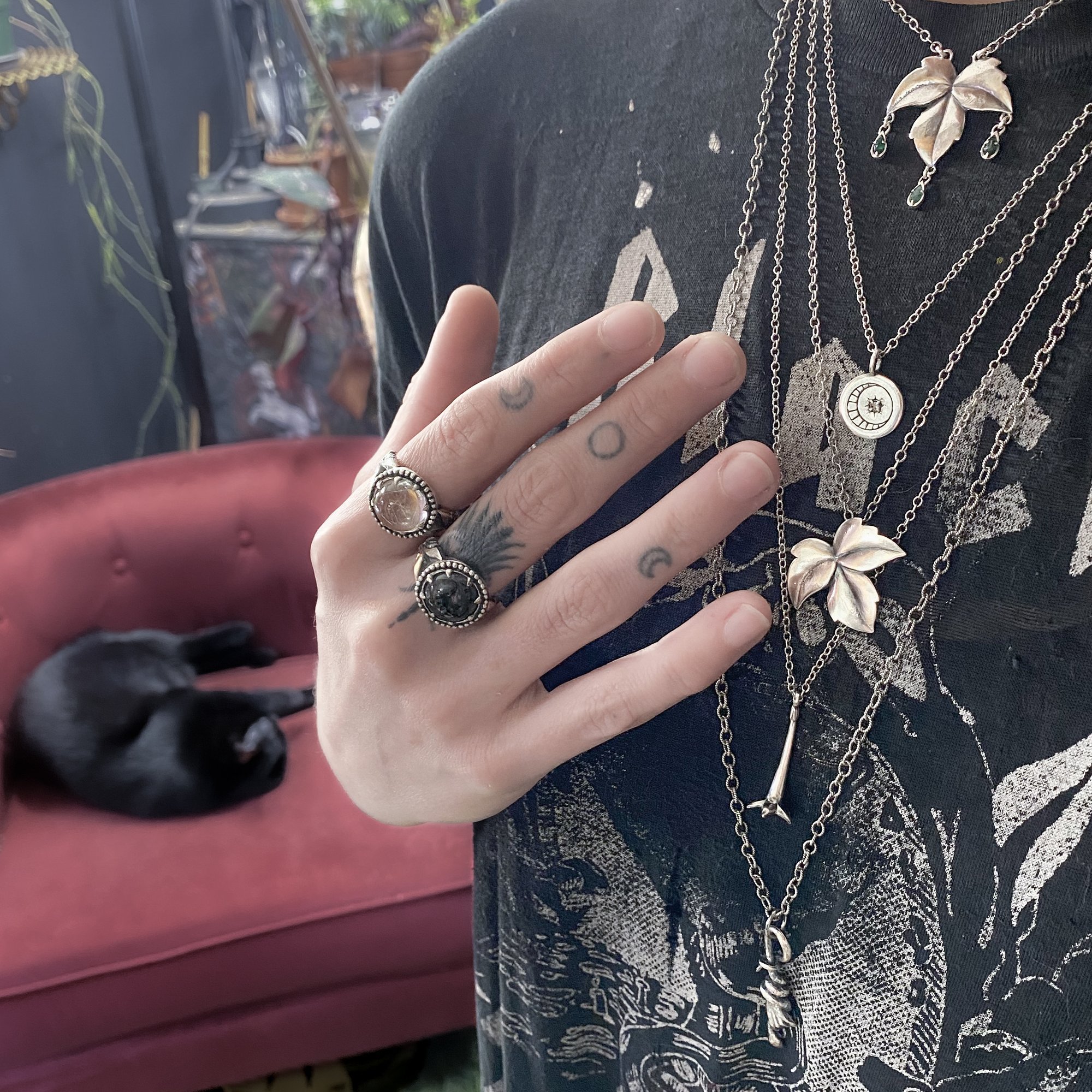 Back from the AO Oubliette, this pendant was one of my earliest designs. The snake was a symbol of eternal love in Victorian England and became a popular theme in romantic and mourning jewelry. I sculpted this piece in soft wax and had it cast in solid sterling silver. It dangles from a 3.1mm sterling silver patterned oval cable chain.